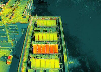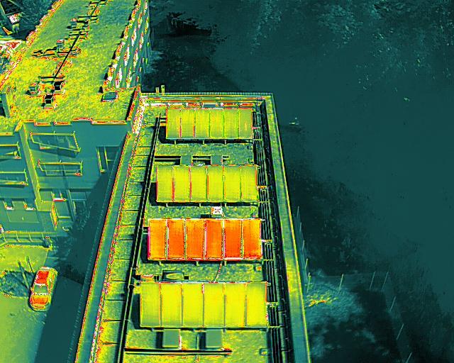 Grace à un capteur Infra Rouge (IR), il est possible de mesurer des températures de suface issues de radiations invisibles. Le drone, doté de ce dispositif, permet d'aller saisir en toute sécurité, des images IR et visibles sur des sites de grande hauteur, des dispositifs difficiles d'accès ou dangereux pour les intervenants.
